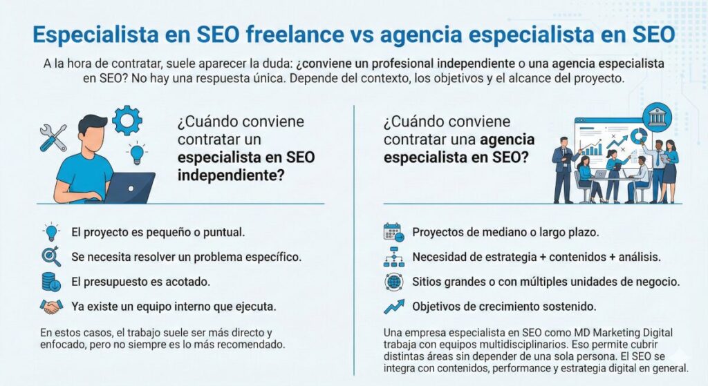 Experto en SEO freelance vs agencia especialista en SEO
